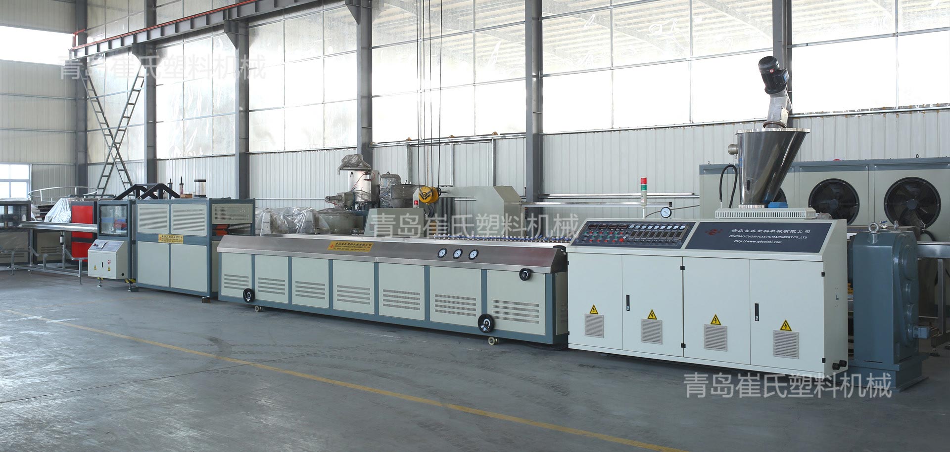 青島崔氏塑料機(jī)械:生產(chǎn)的預(yù)應(yīng)力塑料波紋管設(shè)備、電力管設(shè)備、塑料波紋管設(shè)備、汽車線束波紋管設(shè)備、PPR、PE、PVC、PERT管材設(shè)備及其它各種管材設(shè)備、塑料型材設(shè)備、塑料蜂窩板設(shè)備, 遠(yuǎn)銷:歐州,獨(dú)聯(lián)體,南美洲,中東,東南亞,大洋州,非洲等地的20多個(gè)國(guó)家和地區(qū)。