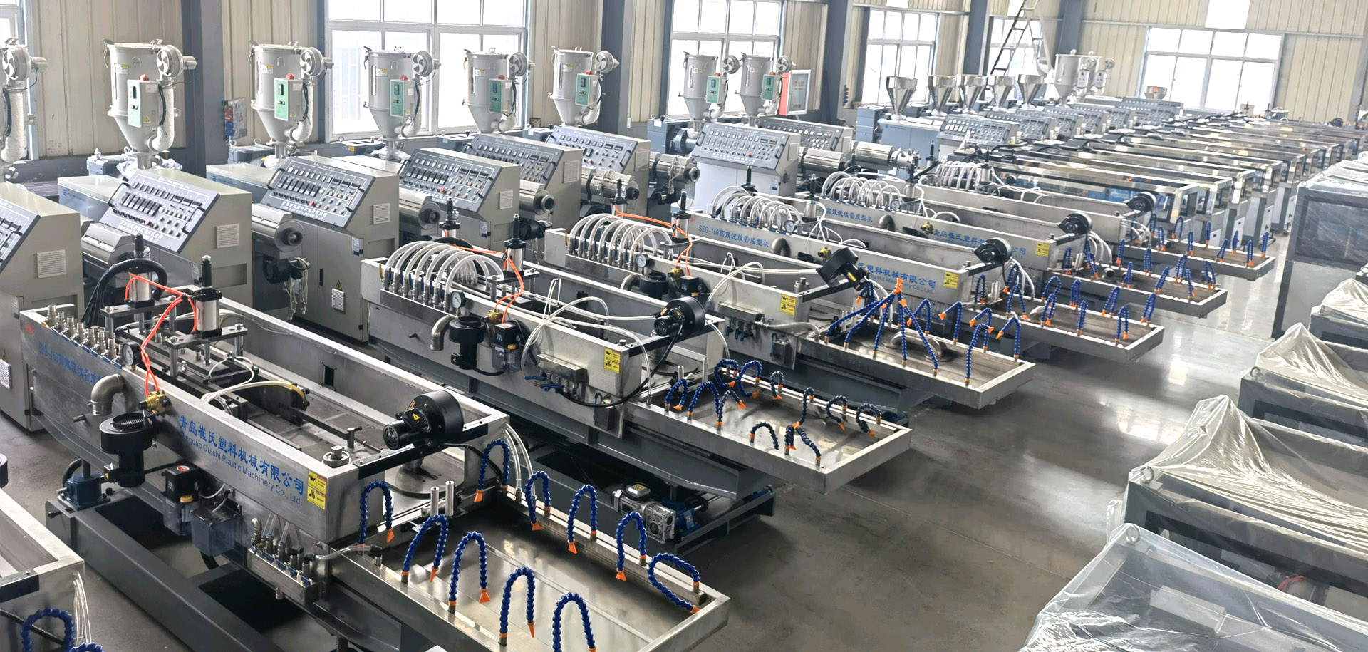 青島崔氏塑料機(jī)械有限公司位于青島膠州市膠西工業(yè)園區(qū),香港路與同三高速交匯處,距膠東國(guó)際機(jī)場(chǎng)20多公里,地理位置便利,占地面積20000多平方米,是一家集生產(chǎn)與研發(fā)各種塑料制品設(shè)備的環(huán)保型企業(yè)。我公司主營(yíng)預(yù)應(yīng)力波紋管設(shè)備、雙壁波紋管設(shè)備、電力管設(shè)備、塑料波紋管設(shè)備、汽車線束波紋管設(shè)備、PPR、PE、PVC、PERT管材設(shè)備及其它各種管材設(shè)備、塑料型材設(shè)備、塑料蜂窩板設(shè)備。公司技術(shù)力量雄厚,開發(fā)能力強(qiáng),生產(chǎn)工藝先進(jìn),以開發(fā)新材料,研制新工藝為基礎(chǔ)生產(chǎn)各種塑料擠出設(shè)備。公司產(chǎn)品遍布全國(guó)各地,并且遠(yuǎn)銷歐州,獨(dú)聯(lián)體,南美洲,中東,東南亞,大洋州,非洲等許多國(guó)家和地區(qū)。